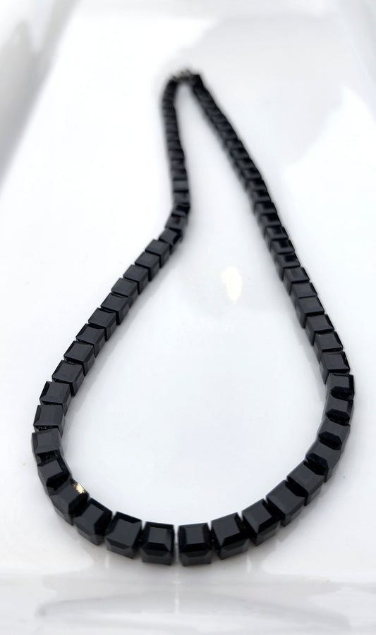 1920s Vintage Black Onyx Cube Swarovski Crystal Necklace.