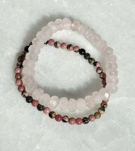 The Rose Quartz & Rhodonite Crystal Bracelet